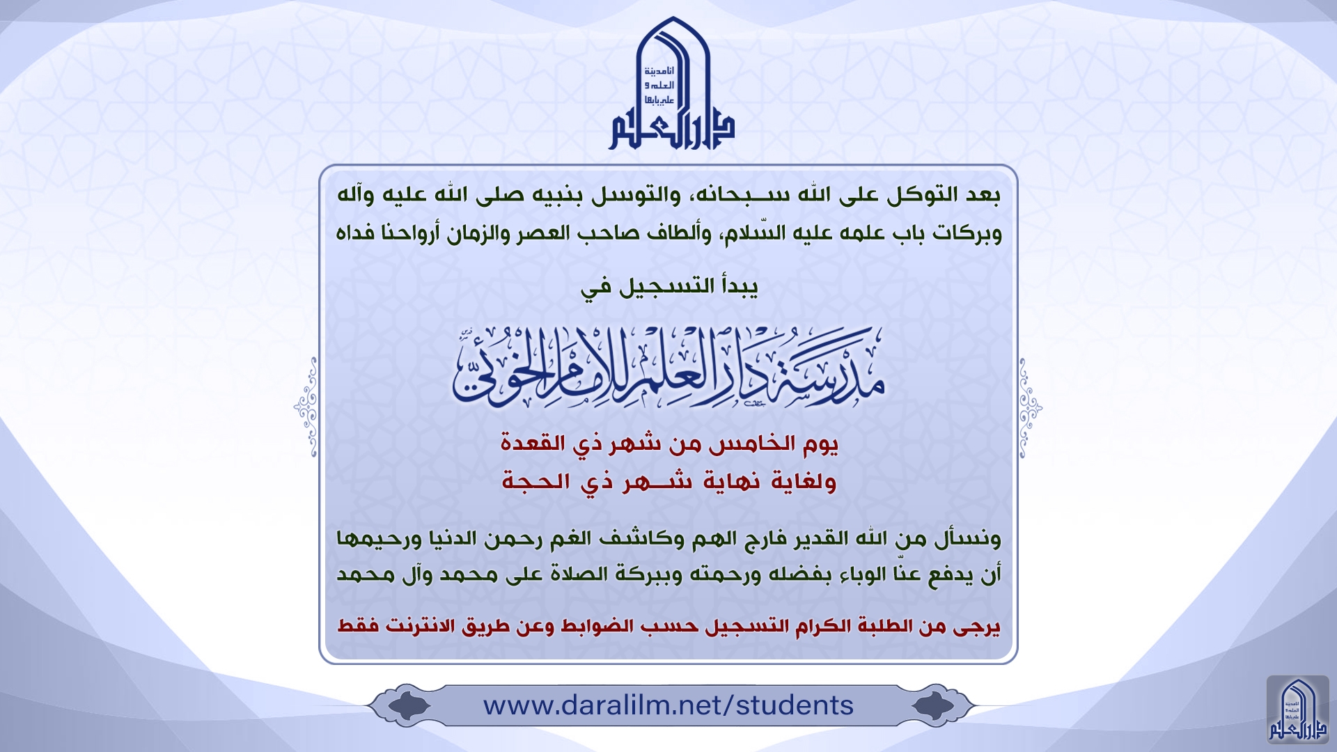 - دانش آموز به قوانین دارالعلم و پوشش حوزوی متعهد باشد.