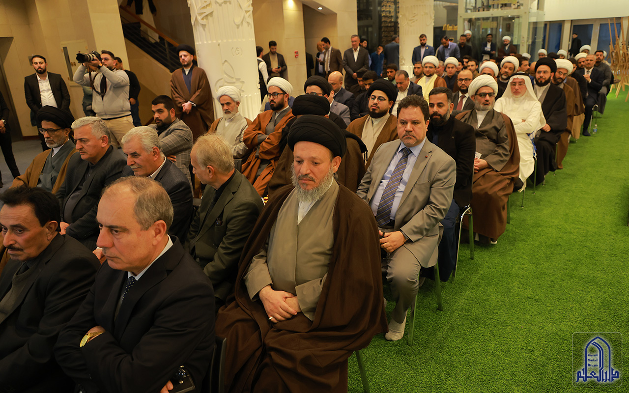 وفي ختام كلمته شكر الاخوة الزملاء في مدرسة دار العلم للامام الخوئي في النجف الأشرف والاصدقاء الاعزاء من خارج المدرسة الذين بذلوا جهودا في سبيل إقامة هذا الملتقى ثم تجول الضيوف في معرض الصور الذي أقيم على هامش الملتقى والذي ضم صورا ولوحات مستوحاة من عبق المناسبة ، وسوف تستأنف يوم غد الجلسات العلمية والبحثية والتي تعالج اهم التحديات التي تواجه أبناء المجتمع هذا وقد قامت قناة العراقية الفضائية بنقل مباشر للحفل.
